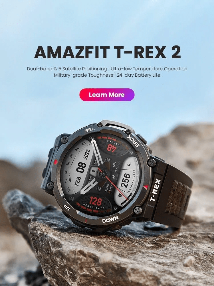 Amazfit T Rex 2, Montre connectée GPS Amazfit T Rex 2 : 1.39” AMOLED, 15 tests militaires, 100m résistance à l’eau, 6 systèmes de positionnement, boussole, altimètre. 150+ modes sportifs, 10 ATM résistant à l’eau. Batterie jusqu’à 24 jours. Mesure de la fréquence cardiaque, saturation en oxygène, niveau de stress, rythme respiratoire en un tap. Synchronisation avec Strava, Adidas Running, Apple Health, Google Fit, Relive, Komoot via l’application Zepp OS. Prête pour toutes les aventures.